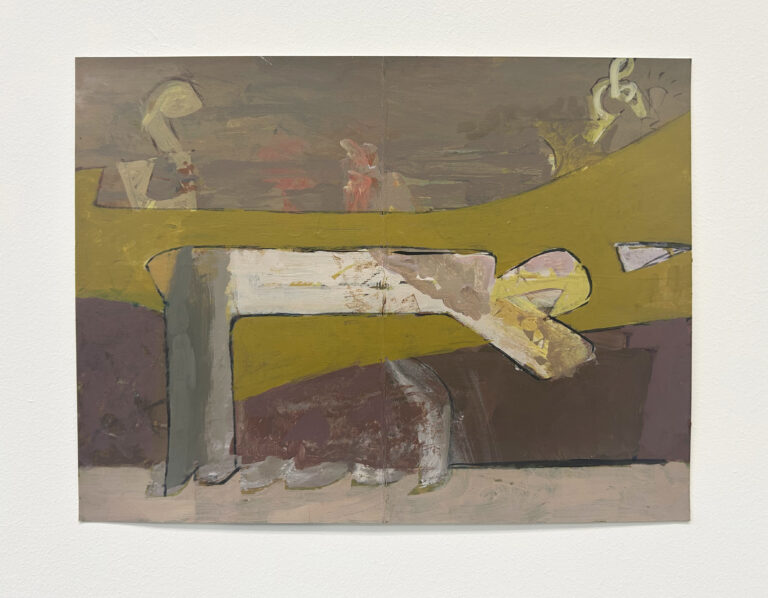 Andrew’s practice has generally been understood as one rooted in the hermetic space of the studio, with the artist consistently returning to a modest set of painterly materials. In size and theme his lyrical works are related to the tradition of easel painting – from Georges Braque to Prunella Clough and Raoul de Keyser. They depict relation- ships between shapes and colours organised in relatively shallow pictorial space; their enigmatic final forms can resemble vessels, emblems, still lifes or landscapes.