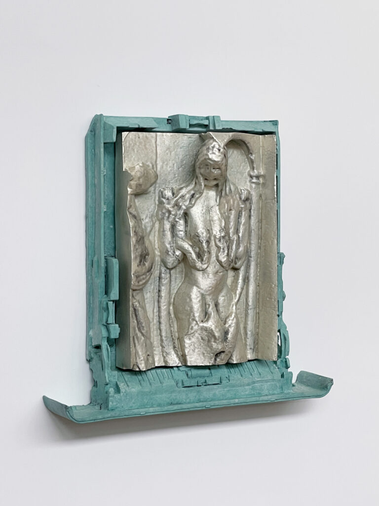 The exhibition “What Remains is the Threat” examines violence not as a passing event, but as an enduring architecture. It reveals how the residue of crisis is domesticated into the everyday, encoded within systems, surfaces, and silent rituals. The works turn the gallery into a mental space where that lingering pressure becomes visible. Through sculptures, reliefs, and constructed objects, the show materializes this latent presence: medieval devouring motifs reimagined as bureaucratic tools; geometrically folded panels that echo oppressive façades; and inert, silvered serpents that structure anxiety rather than symbolize it. Together, these works act as forensic evidence of what a society tolerates and normalizes. They offer no solace, only testimony that violence, now stripped of its spectacle, persists as a form and that form remains.