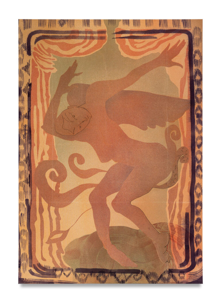 Accustomed to the harsh breaks of modernity, it has become increasingly difficult to recognize forms that strive to weave connections and heal the fractures caused by disconnection. Echoing past moments when art forged unexpected alliances, such forms work to mend divides and renew a sense of shared continuity. The Ballets Russes’ legacy resonates today partly because it emerged from a Russia on the brink of revolution, when artists sought freedom of expression beyond state confines. Among its brightest figures was Vaslav Nijinsky, whose radical choreography and magnetic performances – preserved in part through the writings and later recollections of his daughter Kyra – embodied the troupe’s daring spirit. The company’s collaborations with composers like Igor Stravinsky, particularly the groundbreaking 1910 premiere of The Firebird, fused modernist music and dance into a new, electrifying form. In the current political climate, marked by censorship and geopolitical conflict, this history of cosmopolitan collaboration and artistic exile gains renewed urgency as a symbol of cultural openness and resistance to authoritarianism. Infused with a lyrical rhythm, Lutz-Kinoy’s use of historical ornament and material abundance interlace to form sensuous atmospheres that resonate with the Ballets Russes’ synthesis of dance, music, and visual art.