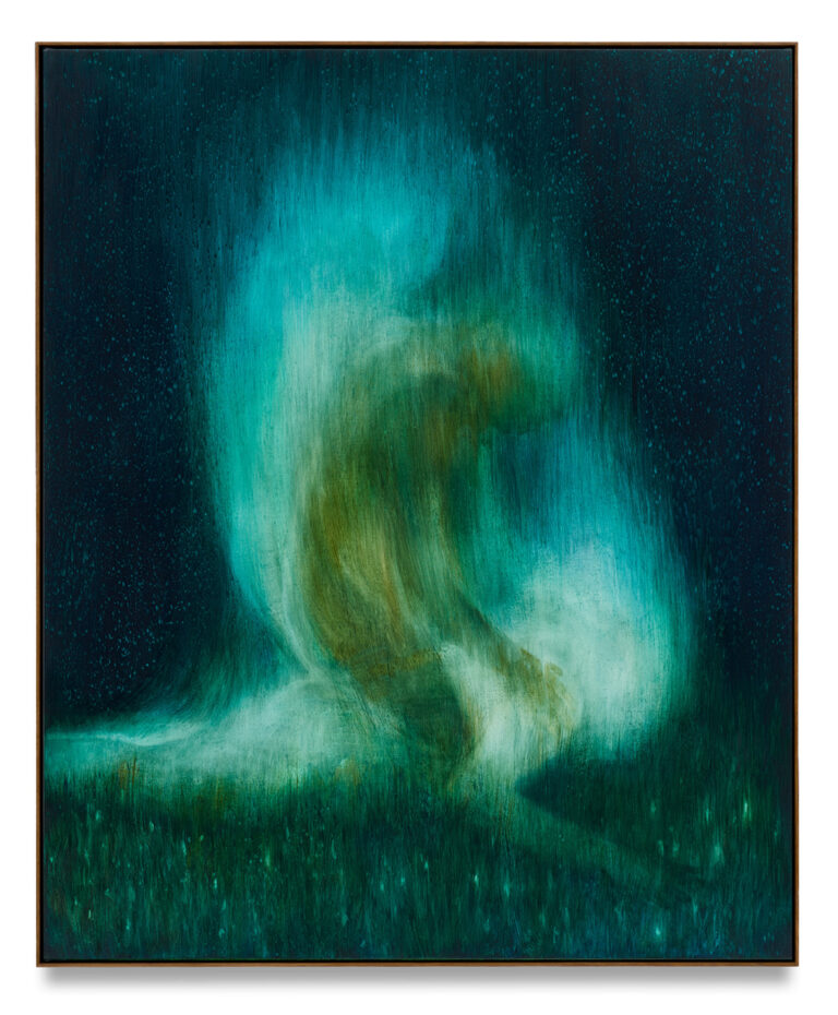 Lutz-Kinoy treats exhibitions like immersive architectures, positioning painting as backdrop and sculpture as spatial intervention. Often conceived as total environments, his works respond to a venue’s architecture and site-specificity, entwining sensual, silhouetted bodies with recurring ornamental motifs, vegetation and floral arabesques, references to art historical movements, from Expressionism and Art Nouveau to Rococo flourishes. His paintings also carry the carnal vitality of 18th-century traditions, with dynamic bodily forms, gestural brushwork and ethereal layers, coupled with an ability to traverse a transhistorical landscape. These sensuous environments can feel like entry points to alternative spaces of communion, where the synergy of historical ornament and abundance lingers in compositions that suspend urgency, acting as parts of an escapist practice. Pleasure, color, intimacy and motion are foregrounded, as Lutz-Kinoy cultivates spaces where existential and emotional possibilities can unfold, allowing alternative forms of freedom to surface. Working across painting, ceramics and performance, the artist develops a plural and cross-referential practice that draws on diverse historical lineages.