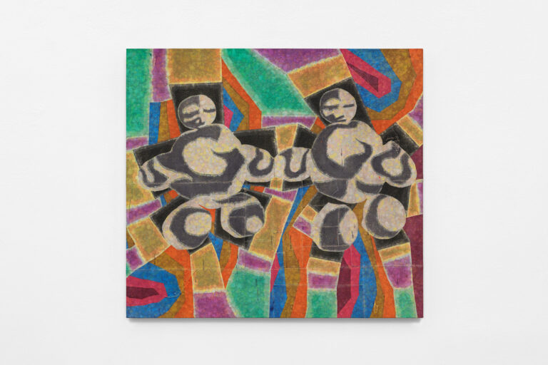 Next door, Max Hetzler presents an impressively arrayed group show curated by Blau International editor Cornelius Tittel. Under the aphoristic thematic – “The most fascinating surface on earth is that of the human face” – the exhibition brings together an expansive selection of self-portraits, from established figures such as Martin Kippenberger and Tracey Emin to younger, closely watched artists like Lorenzo Amos, who uses the palimpsest of his studio walls to turn self-portraiture into a reflection of existence. The face emerges as a site of contest, where identity is staged, fractured and subtly altered, even reflecting the viewer’s own face back.