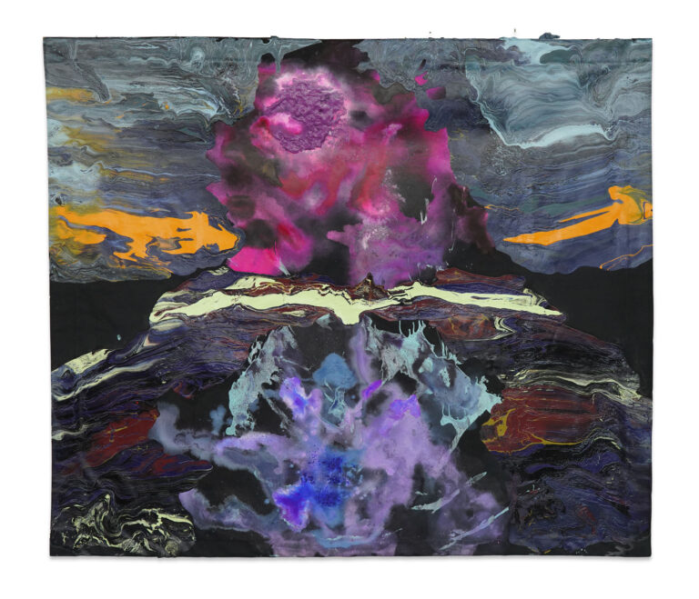 A short walk away, Capitain Petzel offers a first glimpse through its glass front of sculptures and paintings by Los Angeles–based artist Rodney McMillian. Born in 1969 in Columbia, South Carolina, McMillian works primarily with discarded consumer goods such as blankets, tarps, carpets, and furniture, which he reconfigures into sculptural forms. Through these materials, he probes the darker undercurrents of the American way of life and the structural inequalities that shape it. Material and method are inseparable in his practice. The way he cuts, folds, and stitches these objects becomes a language for addressing Black lived experience, as well as questions of class, race, gender, and broader socioeconomic conditions. In his “Black Paintings,” McMillian uses black fabric or vinyl as a ground, draping and sewing it into layered compositions that extend into three dimensions. While these works echo Abstract Expressionism on a formal level, their charge is unmistakably political. The exhibition also features a new film by the artist.