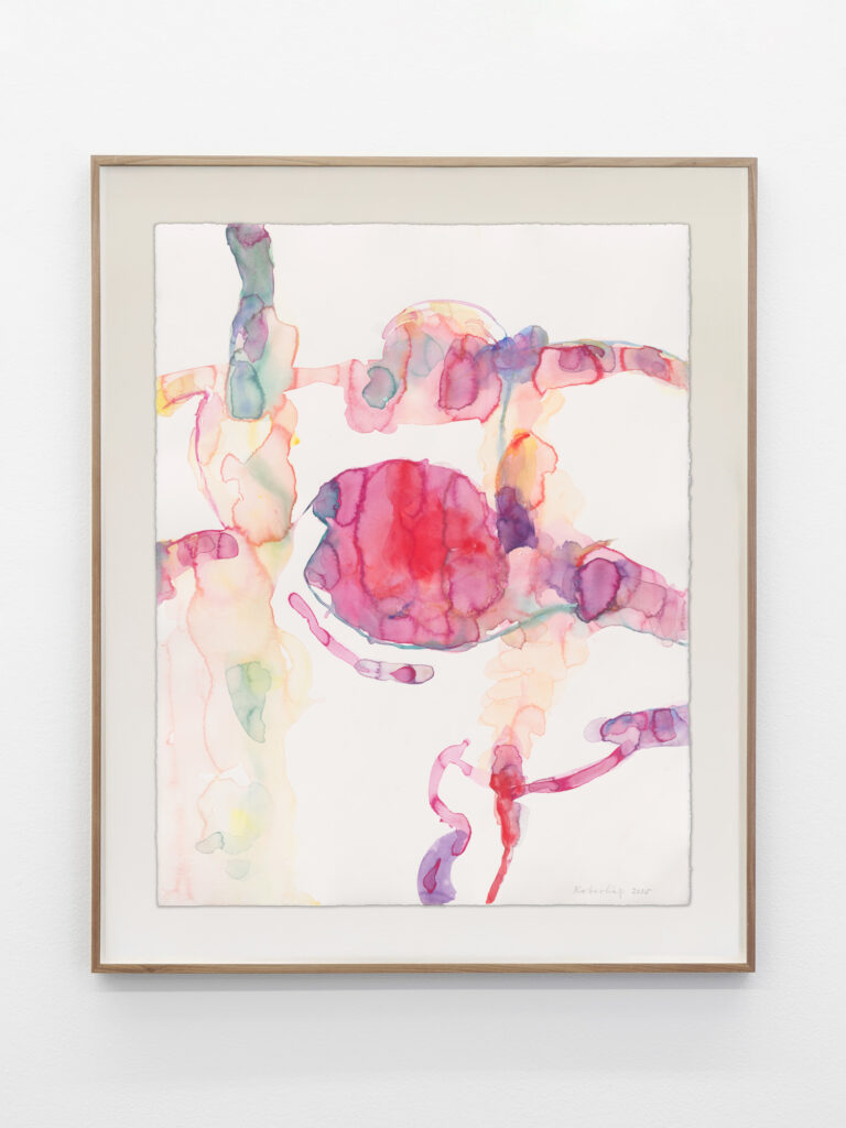 The exhibition presents, alongside large-scale canvases from the years 1992 to 2026, an extensive series of watercolors characterized by intense coloration, broad gestural actions, and consistent abstraction. “The more intimate the painting, the rougher the means,” says Koberling. The watercolors form large groups of works and reveal the mystical-romantic side of the artist.
