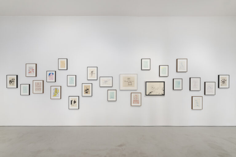 Gordillo’s automatic drawings, humorous calligraphic diagrams, produced between the 1960s and 1990s, are displayed in playful dialogues alongside carefully selected works by each invited artist. Rather than illustrating influence in a linear way, these pairings reveal reciprocal affinities, echoing formal choices, and conceptual friction. The result is a constellation of conversations: a polyphonic arrangement that allows viewers to experience drawing as a musical structure — where repetition, variation, interruption, and syncopation shape the visual field.