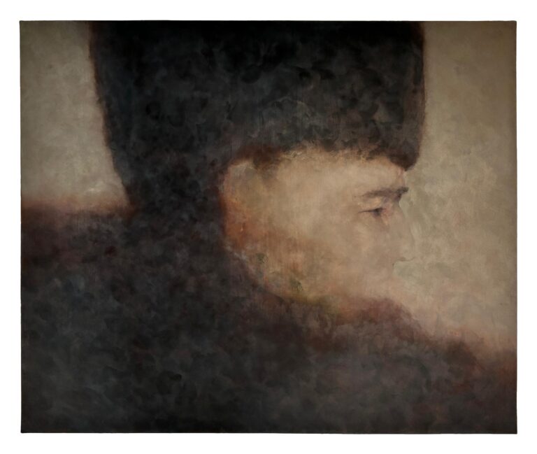 Hovering on the limits of figuration, Heintz’s subjects depict unknown historical figures, often inscribed within the universal narrative of a social role, function or performing act that is larger than their individual existence. Rendered in an aqueous blur that just allows to detect the defining lines of a face, Heintz’s vivid compositions are stretched across the entire canvas, rendering an all-encompassing atmosphere that defies a clear spatial-temporal determination.