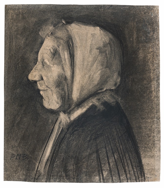 Bildnis einer alten Frau im Profil nach links, um 1898