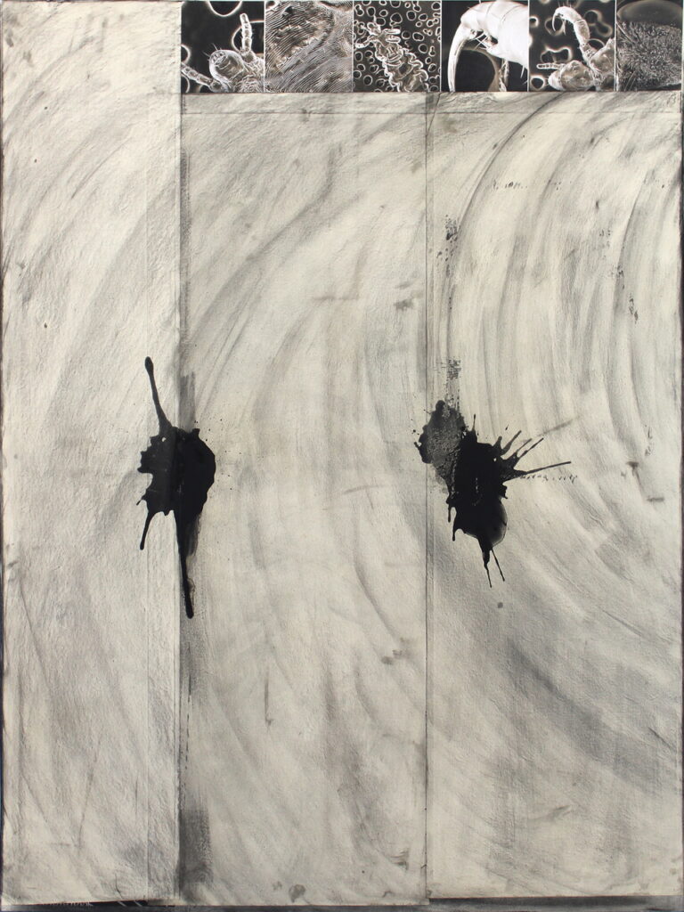charcoal, pigmets & wallpaper on canvas