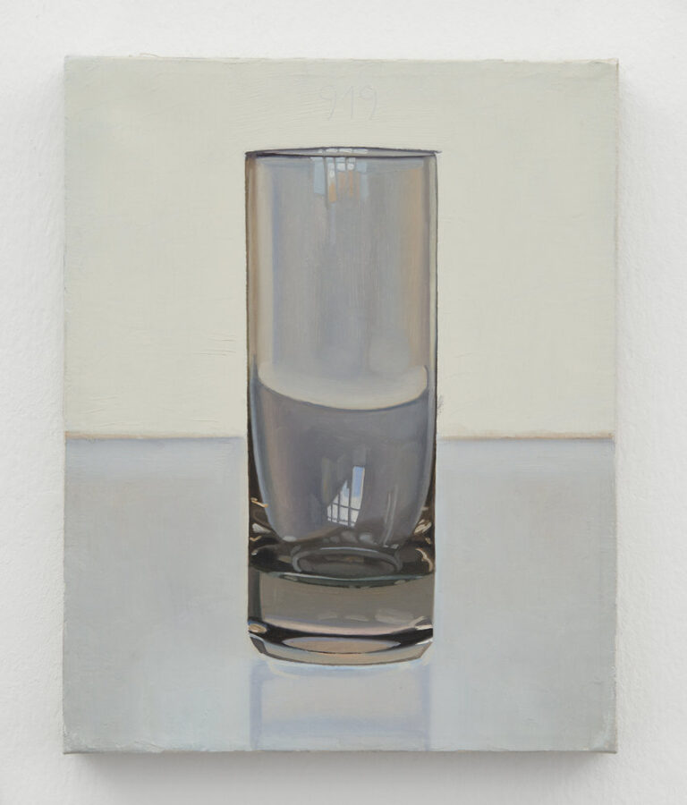 Kawara’s paintings are conceptually beautiful… as the world moved the work pretty much stayed the same. I think Dreher’s glasses do a similar thing but they are all very different. The empty glass reflects the situation or context in which it was painted (inside, outside, daylight, artificial light, etc). It holds nothing but possibilities. As Dreher has painted so many empty glasses, I can only assume they got better as he went along. Practice makes perfect. I wonder if there is a preference for early or late paintings. I think they must be painted from photographs or at least that’s the only way I could attempt them. Apparently they are all painted from life…