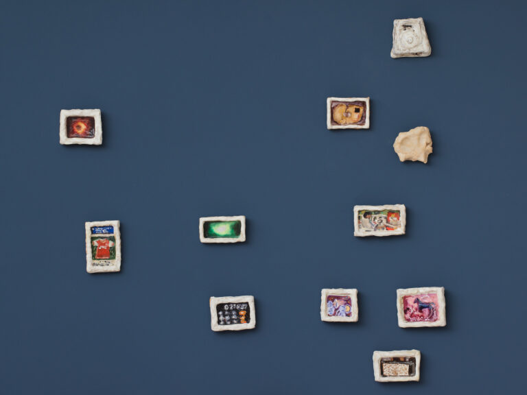 A throughline in Trisha Baga’s expansive practice is their ongoing exploration of machines as narrative creatures. Baga empathizes with the tools and systems their work engages, often invoking them as metaphors for reflection, connection, and destruction. MORE, their sixth solo exhibition with Société, takes its title from one of the first words a child utters as well as the driving desire behind technological development: perpetual “advancement,” more data, more speed. An immersive 3D video, a constellation of ceramic works, and a series of video projections on paintings transform the gallery into an offbeat computer desktop, a living interface where the operations of a system remain visible.