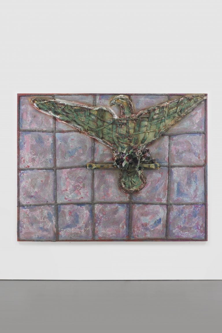 Dial uses carpet materials, housepaint, seemingly garish, conflicting, and naive materials and methods. Life Afro-American culture in general, use whatever you got. (Niggers stealin’ from the smokehouse, stealing from the henhouse, steal any and every— why? Slavery is still legal. Freedom is illegal!) We are not self-taught but world- taught, wherever we are in it. We register what comes in to us and circulate it like blood and breath.