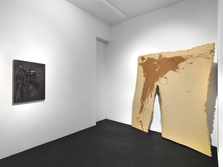 Thilo Heinzmann’s third solo exhibition with neugerriemschneider unites selected works from a number of his artistic cycles, taking up the conceptual dialog laid out in his new monograph, acting as testament to the rigorously analytic quality of the artist’s painting, and shaping a concentrated survey of his practice. By using materials atypical of the medium – Styrofoam, particle board, aluminum, shards of glass or grains of sand among them – Heinzmann puts to the test the principles of painting, expanding the discipline through new physical and technical theories to expose the dynamic, haptic nature of his work and process.