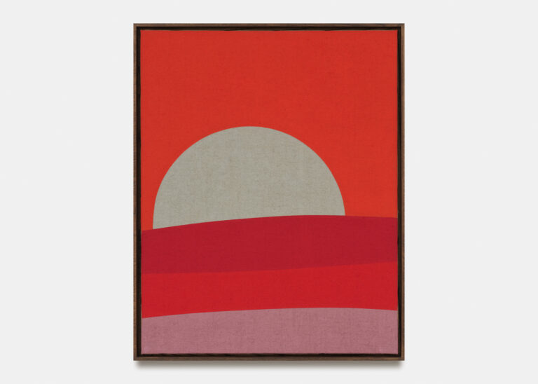 Ballester Moreno has developed a distinctive visual language rooted in the symbolism of the natural world. Stars, suns, vegetation, and water recur throughout his compositions, rendered in vivid hues of red, blue, green, and yellow. His work evokes a universe of primary color and elemental form, where raw materials such as unprocessed jute lend the paintings an austere physicality and singular beauty. While grounded in abstraction, his practice resonates with traditions of pattern-making, craft, and folkloric culture, each deeply connected to lived relationships with nature. At the core of this body of work is a sustained meditation on the material presence of the landscape, distilled into radically simplified forms. The paintings propose a contemporary approach to landscape as both image and contemplative object.